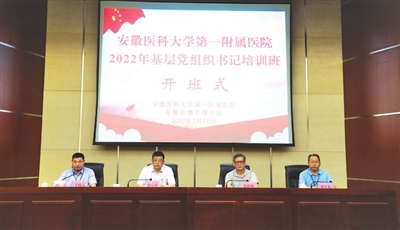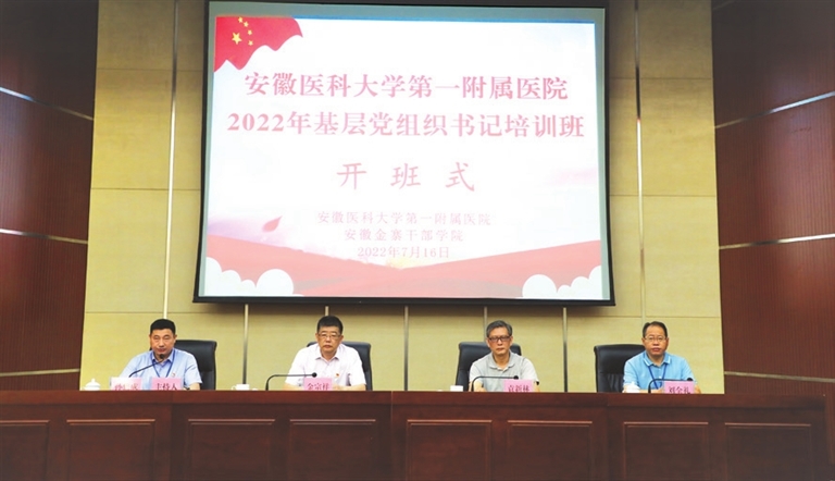 院党委书记金宗祥,执行院长孙倍成,党委副书记、副院长刘全礼,副院长、高新院区院长陈旭林,总会计师谢峰,党委委员、正处级组织员丁长明,安徽金寨干部学院副院长袁新林出席开班式。开班式由执行院长孙倍成主持。医院90余名基层党组织书记参加培训。