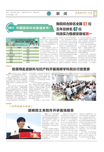 我院综合排名全国61位 五年总排名67位 科技实力稳居安徽省第一