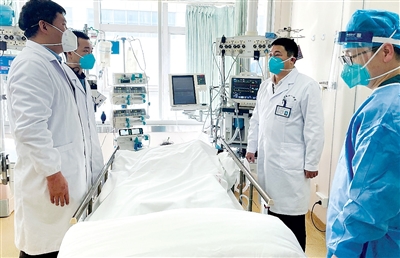 2022年,选派189名护士驰援西藏、池州等地区,选派专家参与省内外疫情防控工作共计177人次。面对工作重心转向医疗救治的新阶段,医院按照“保健康、防重症、降病亡”的要求,克服医护人员大面积非战斗减员的考验,坚持全院一盘棋,坚持统筹“大协调”、服务“大扩容”、病区“大调整”、人员“大调动”、物资“大调配”, 不断优化诊疗流程,加强工作调度,进一步提升医疗救治科学性和精准性,全力保障人民群众看病就医需求,全力守护人民群众生命安全,生动诠释了伟大的抗疫精神和安医精神。