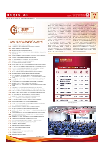 医院全年共获批国家级项目50项,其中获国家自然科学基金项目46项(杰出青年基金1项、重大研究计划项目1项、联合基金1项、中德合作交流项目1项、面上项目21项、青年基金21项)、国家科技部科技创新2030-“脑科学与类脑研究”重大项目1项、国家重点研发计划项目子课题3项。实现了国家自然科学基金杰出青年基金的历史性零的突破,国家科技部科技创新2030-“脑科学与类脑研究”重大项目的获批,实现了医院创新研究“国家队”的“零突破”。获批其它各级各类科研项目359项。发表高水平论文数894篇,其中影响因子大于5分的431篇。