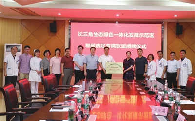 本报讯 为进一步贯彻长三角一体化发展战略,共同推进糖尿病足专科领域的高质量发展,7月5日上午,长三角一体化示范区糖尿病足专病联盟调研暨签约授牌仪式在我院成功举办。