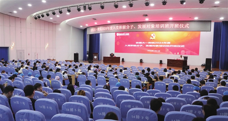 本报讯 为深入学习贯彻习近平新时代中国特色社会主义思想和党的二十大精神,进一步加强我院党员队伍建设,7月1日,我院分党校在绩溪路院区内科医技楼会议中心举行2024年度入党积极分子与发展对象培训班开班仪式,校党委副书记、院党委书记谢瑞瑾出席开班仪式并讲话,院党委副书记、副院长刘全礼主持开班仪式。