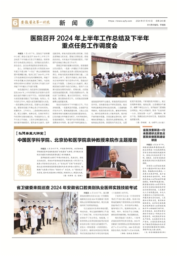 院长孙倍成针对下半年重点工作,作出详细部署,一是紧抓医疗质量,全面提升医疗技术水平。要将高质量发展、三级公立医院绩效考核与省属头部医院建设紧密结合,以临床重点专科建设为抓手,对标考核指标,悟透政策要求,不断提升医疗服务质量。二是聚焦学术科研,着力提升科研创新能力。高效推进科研平台建设,积极组织国自然项目申报,加快建设高水平研究型医院,推动科研创新和医学转化纵深发展。三是重视教育教学,优质完成各项任务。重视本科研究生、规专住培等各类人才教育培养,稳步提升教育教学质量。四是创新运营机制,提升精细化管理能力。要汲取先进管理经验,积极转换运营思维,既要坚持节流压支,也要拓宽开源思路,不断增加技术性收入,真正实现降本增效、高效运营。五是增强协作意识,凝聚干事创业合力。各职能部门要增强全局观念,树立大局意识,坚持“处室向前一小步,医院发展一大步”,提振精神,铆足干劲,圆满完成全年目标任务,助推医院高质量发展。